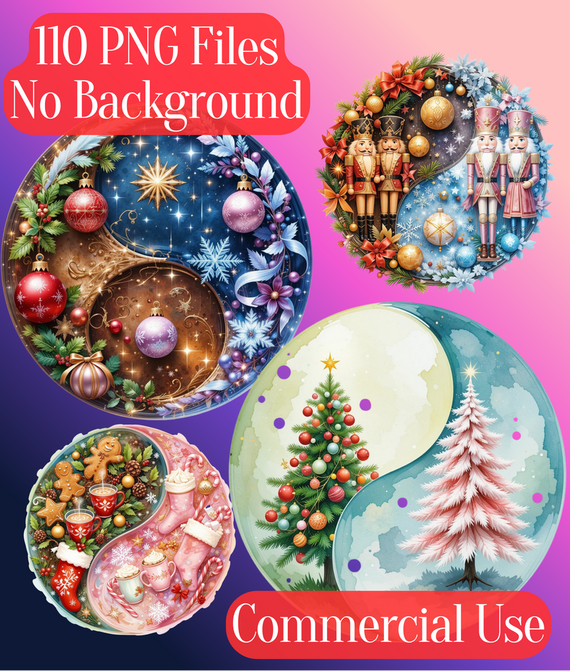 Embrace harmony this holiday season with our Yin Yang Christmas Clipart Bundle. Perfect for festive projects, this collection features unique yin yang designs with a Christmas twist, ideal for greeting cards, digital scrapbooking, and personalized gifts. Add a touch of balance and creativity to your holiday crafts with these versatile and high-quality clipart images.