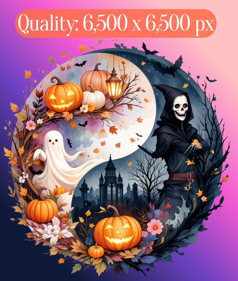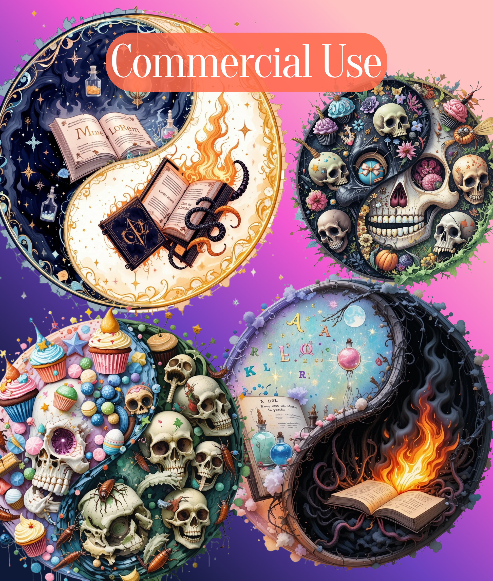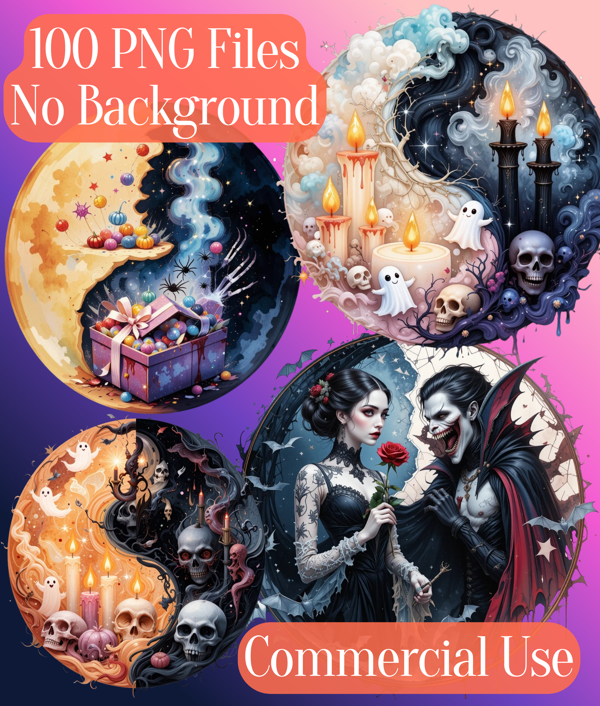 Unleash creativity with the Yin Yang Halloween Clipart Bundle, featuring a captivating mix of spooky and harmonious designs, perfect for unique Halloween crafts and decorations.