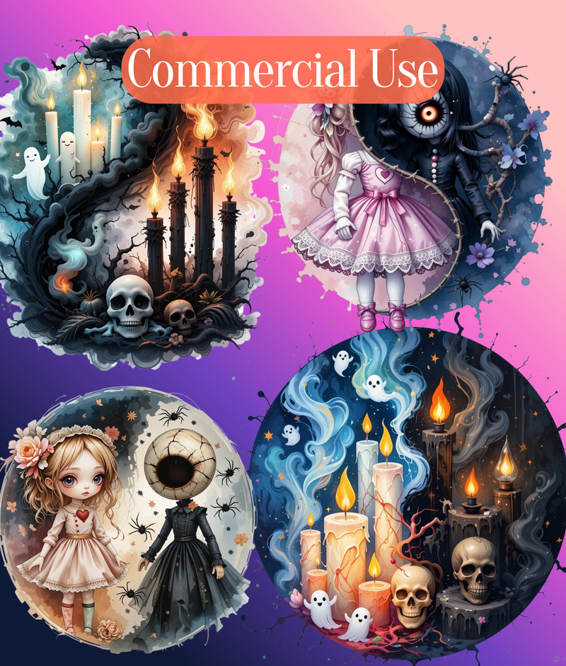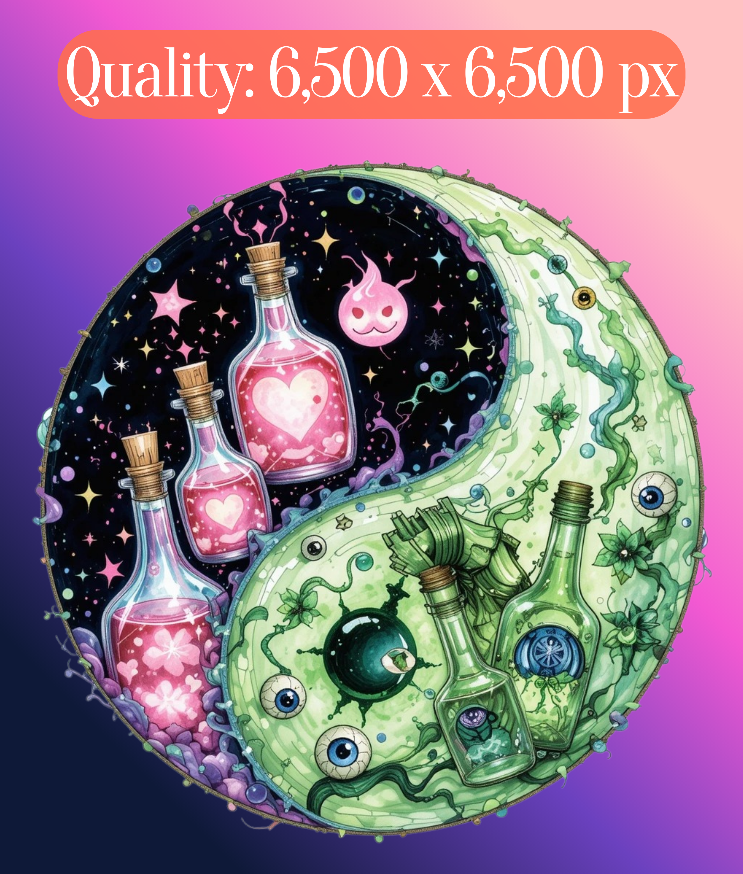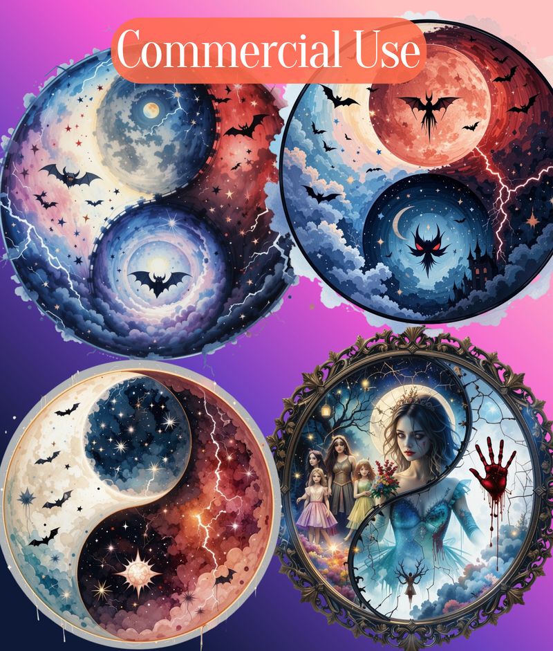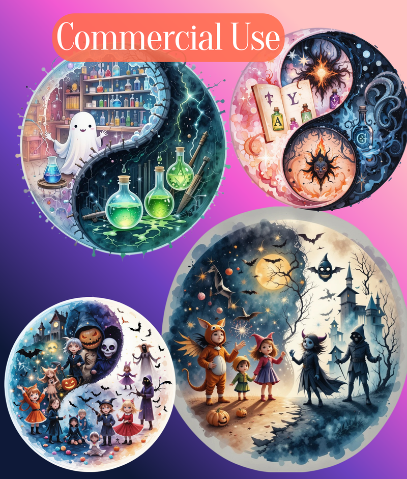 Unleash creativity with the Yin Yang Halloween Clipart Bundle, featuring a captivating mix of spooky and harmonious designs, perfect for unique Halloween crafts and decorations.